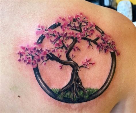 The disappearance of the flowers in two weeks is not something that makes you feel good. This is a chinese quote added to japanese cherry blossom tattoo. Cherry blossom tattoo on shoulder: The cherry blossoms are inked with soft pink colour, and it has the branches in black colour with the cherry tree growing down from upside. Cherry tree tattoos.