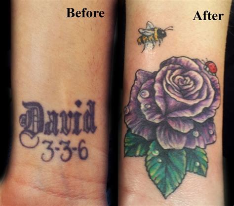 Name cover up tattoo inspiration ideas feather cover up tattoos. Cover up tattoos before and after pictures. A dark tree tattoo is a good option to cover up tattoos. Dark colors, like green, blue, purple and even red, all work great at covering up faded text and completely disguise the name tattoo that was formerly there. Feathers are a hugely.