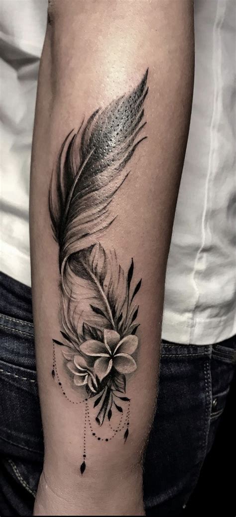 While the idea may seem plain at first, there is actually serious depth embedded into the concept. Cute owl and feather tattoo on arm sleeve. 8 years ago 8 years ago. Birds flying from feather tattooed on upper back by paulo madeira Black ink turkey feather leg tattoo.