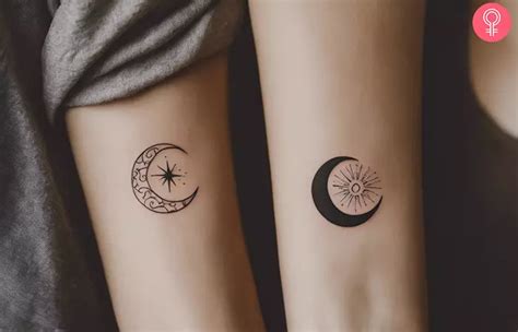 See more ideas about moon tattoo, sun tattoos, matching tattoos. Matching minimalist shining sun and black crescent moon temporary tattoo. Set of two plus two. Usually, sun tattoos are masculine and moon tattoos are feminine but here the artist showed a different side. What does matching sun and moon tattoo mean?
