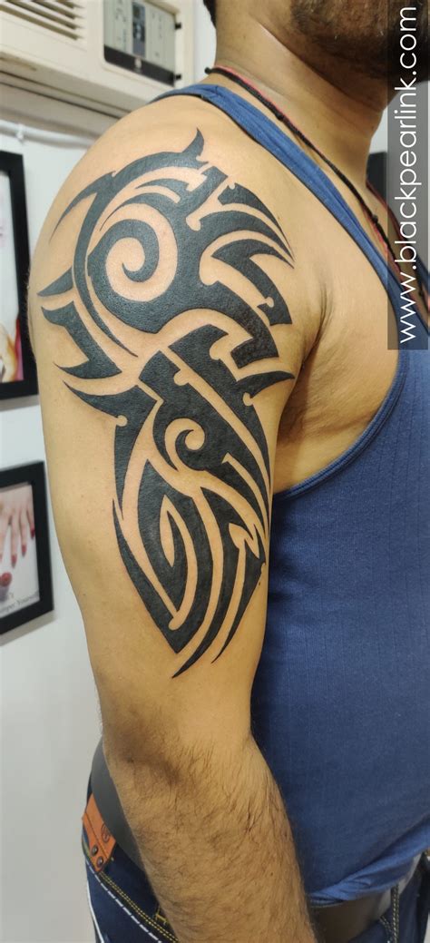 Chest, upper arm, and shoulder tattoo a design that extends onto your pecs will have a lifting and highlighting effect. Lion images are one of the most common tribal tattoo designs for men, because they represent strength and power. Tribal upper arm tattoo tribal tattoos typically start at the top of the shoulder and feature the rounded form.