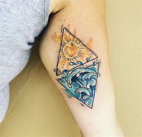 The major elements used are wind, water, smoke, rocks and earth, waves, and clouds. Matteo requested a half sleeve tattoo related to water, to the sun and to the values he trusts. Below are 67 stunning watercolor tattoo designs with meanings 1.